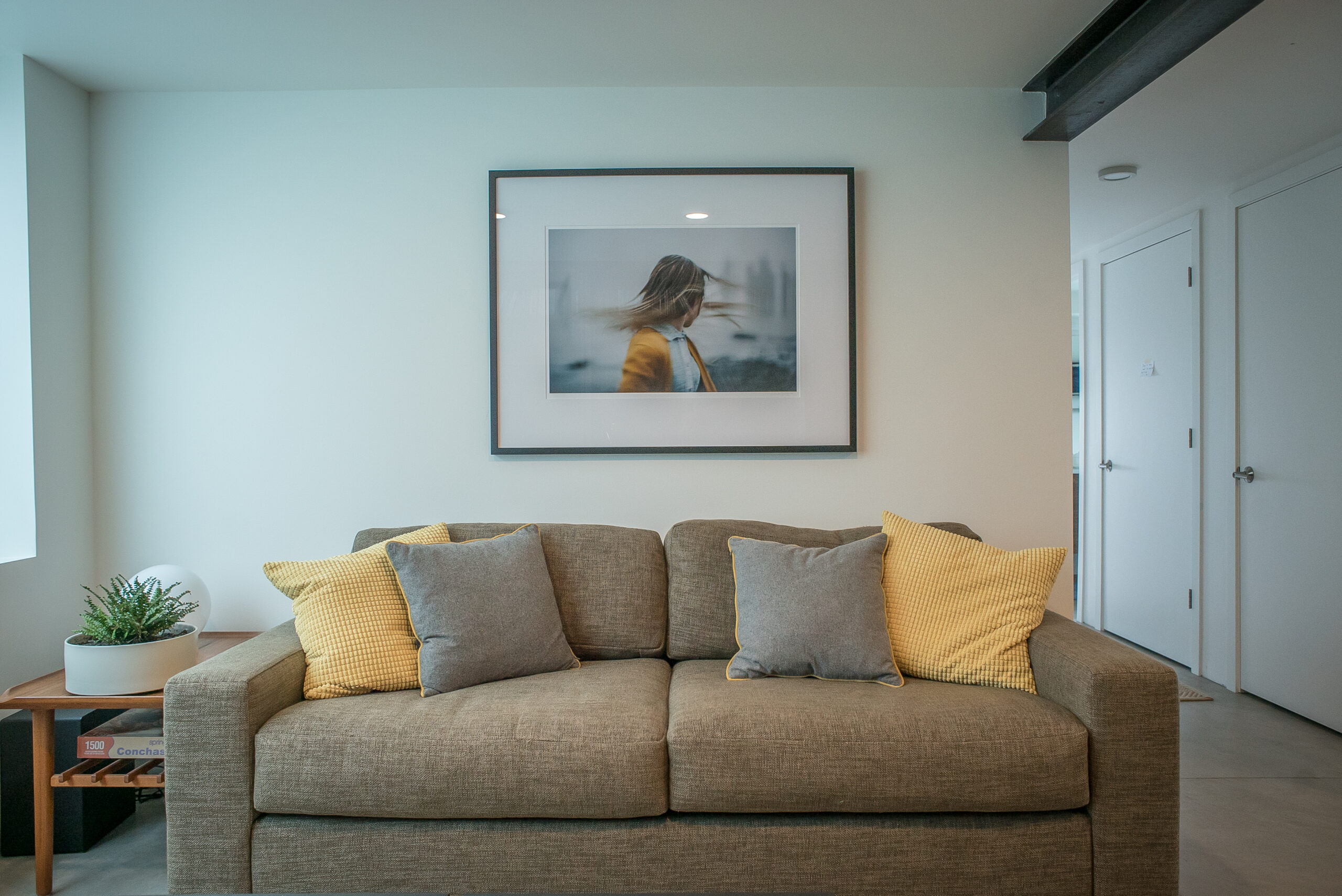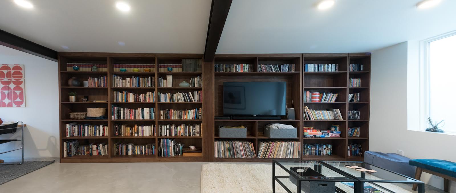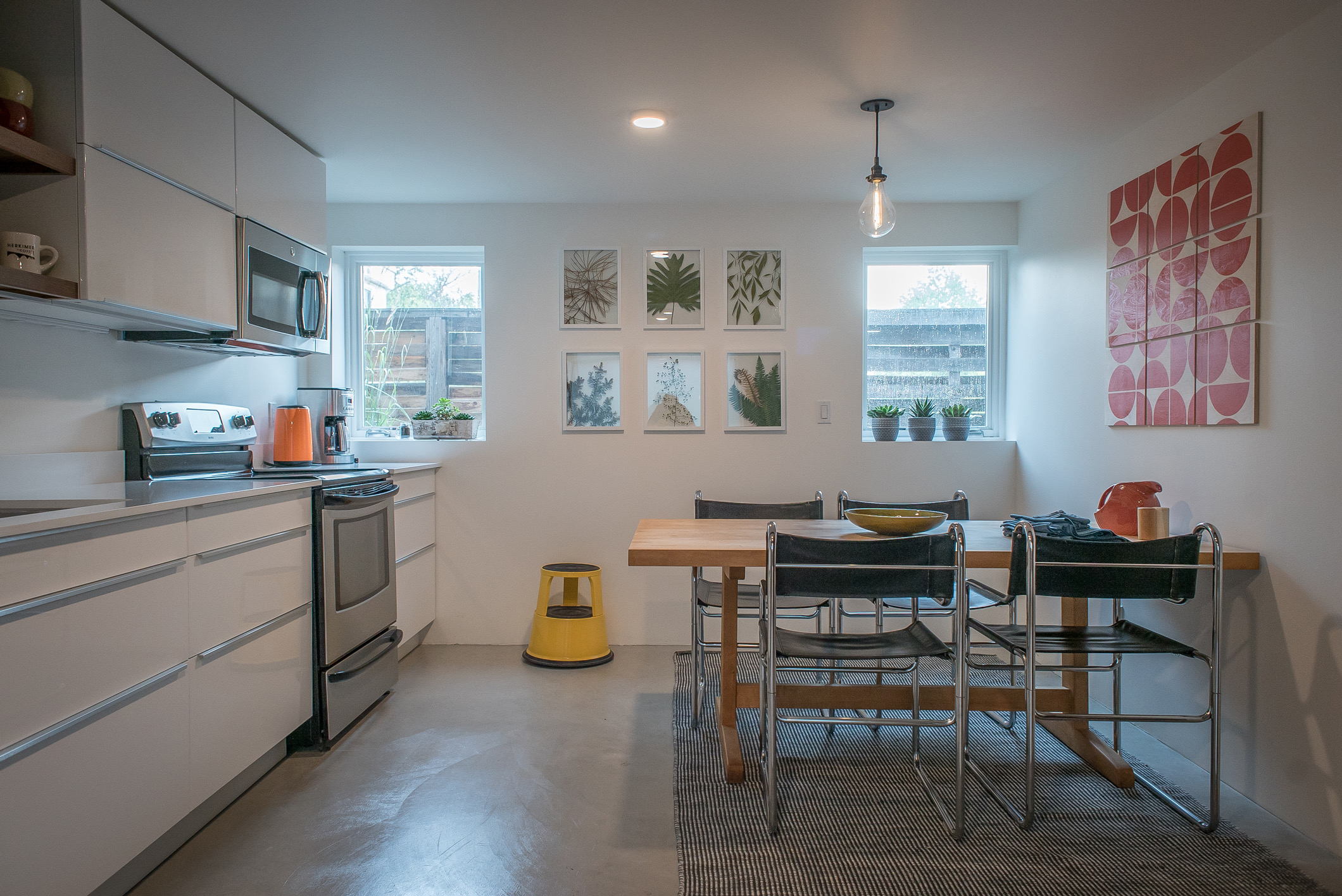 Conversion of an unfinished basement into an accessible, one bedroom apartment. Large frosted windows preserve privacy while transmitting tons of natural light. In-slab radiant heat make for cozy, silent and invisible heated floors.